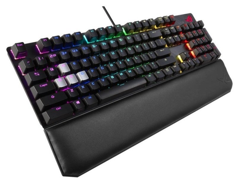 ROG Strix Scope NX Deluxe RGB wired mechanical gaming keyboard with ROG NX switches, aluminium frame, ergonomic wrist rest, Aura Sync lighting and additional silver WASD for FPS games